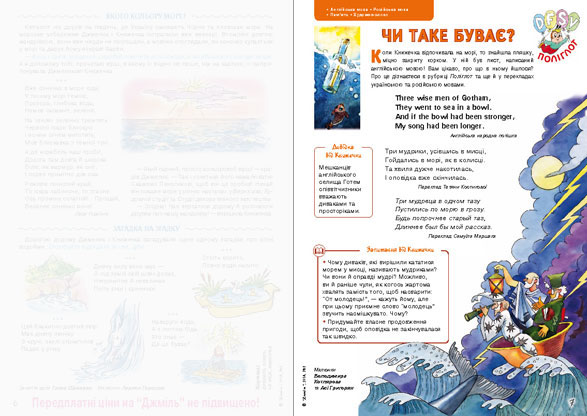 Прочитати дітям переклад англійської потішки українською та російською мовами, провести бесіду за запитаннями Книжечки допоможе стаття журналу “Джміль”.