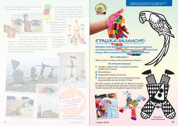 А читачі друкованої версії журналу “Джміль” отримають ще й шаблони для створення іграшок-балансирів — веселого папужки та вправного клоуна-акробата. Захопливих вам вистав!