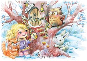 Дійові особи: Іванка, Остап, Кіт, Пугач, Зайчик, святий Миколай.