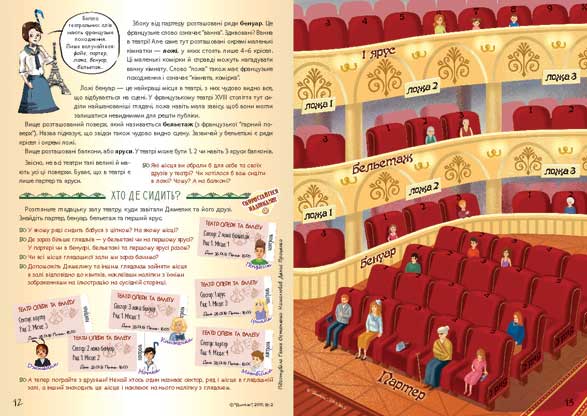 Дуже практична публікація допомагає ознайомити дітей з інформацією, яка має бути на кожному квитку до театру, і навчити з її допомогою знаходити своє місце у залі.